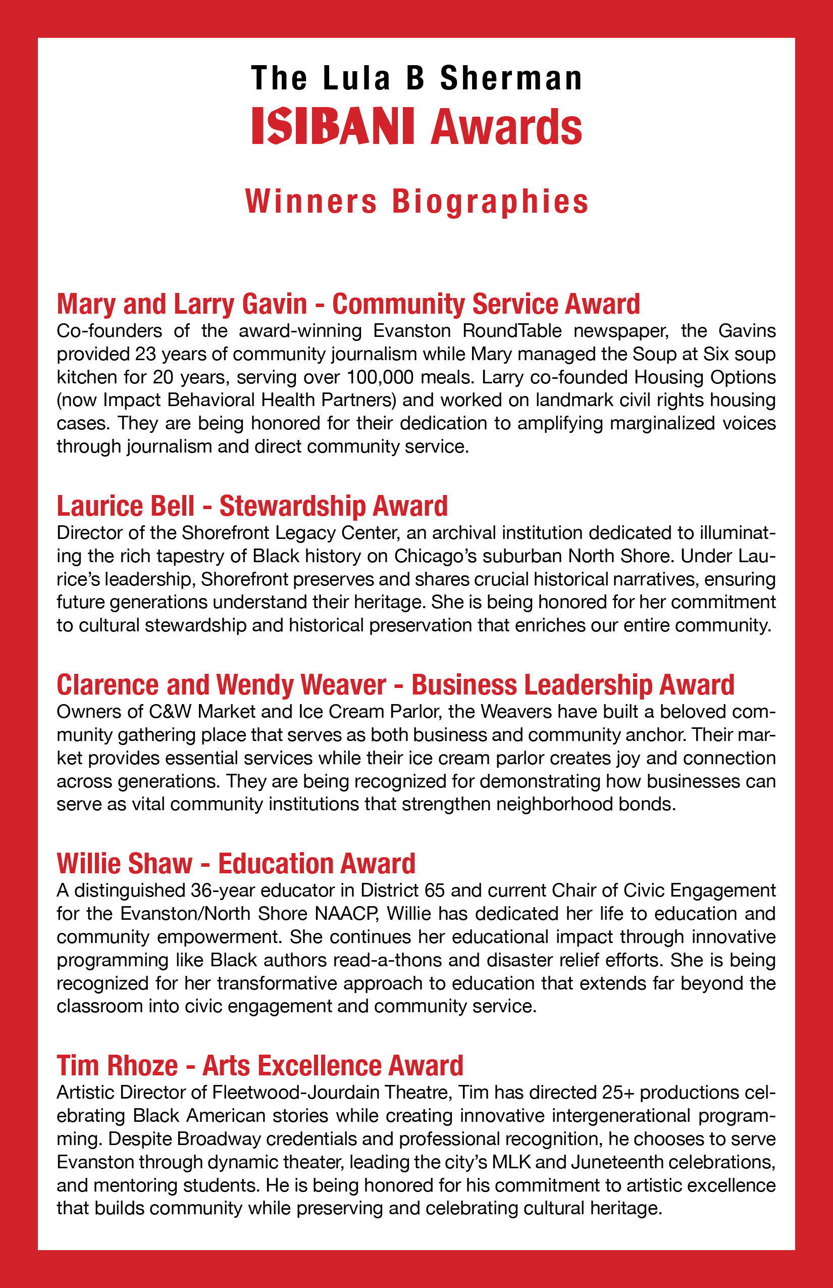 Each year at the Lula B. Sherman - Fisk University Choir concert we honor community luminaries with the Isibanis. Isibani is the Zulu word for beacon or lamp. The Isibani is given to honor those that have made extraordinary contributions to our community and culture- those that are beacons of light, who have led the way and made others’ lives better.